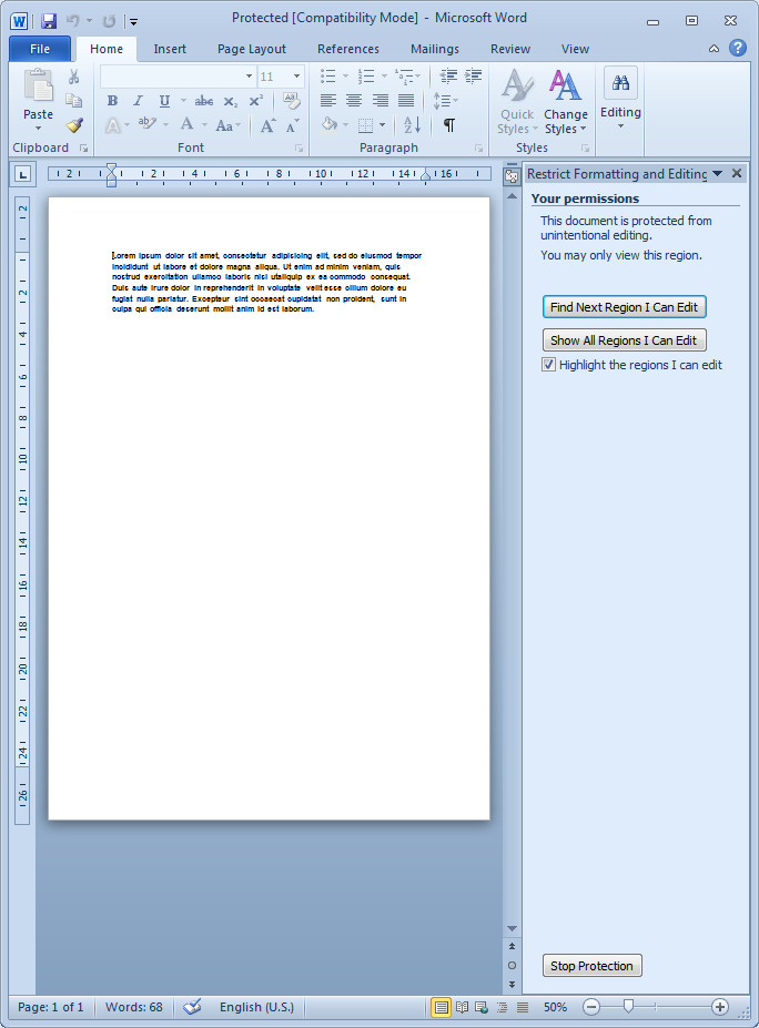 Notice that this method does not encrypt the contents of the Word document, only protects them from unauthorized modifications. This method is not secure and can be easily overriden by an experienced user.
